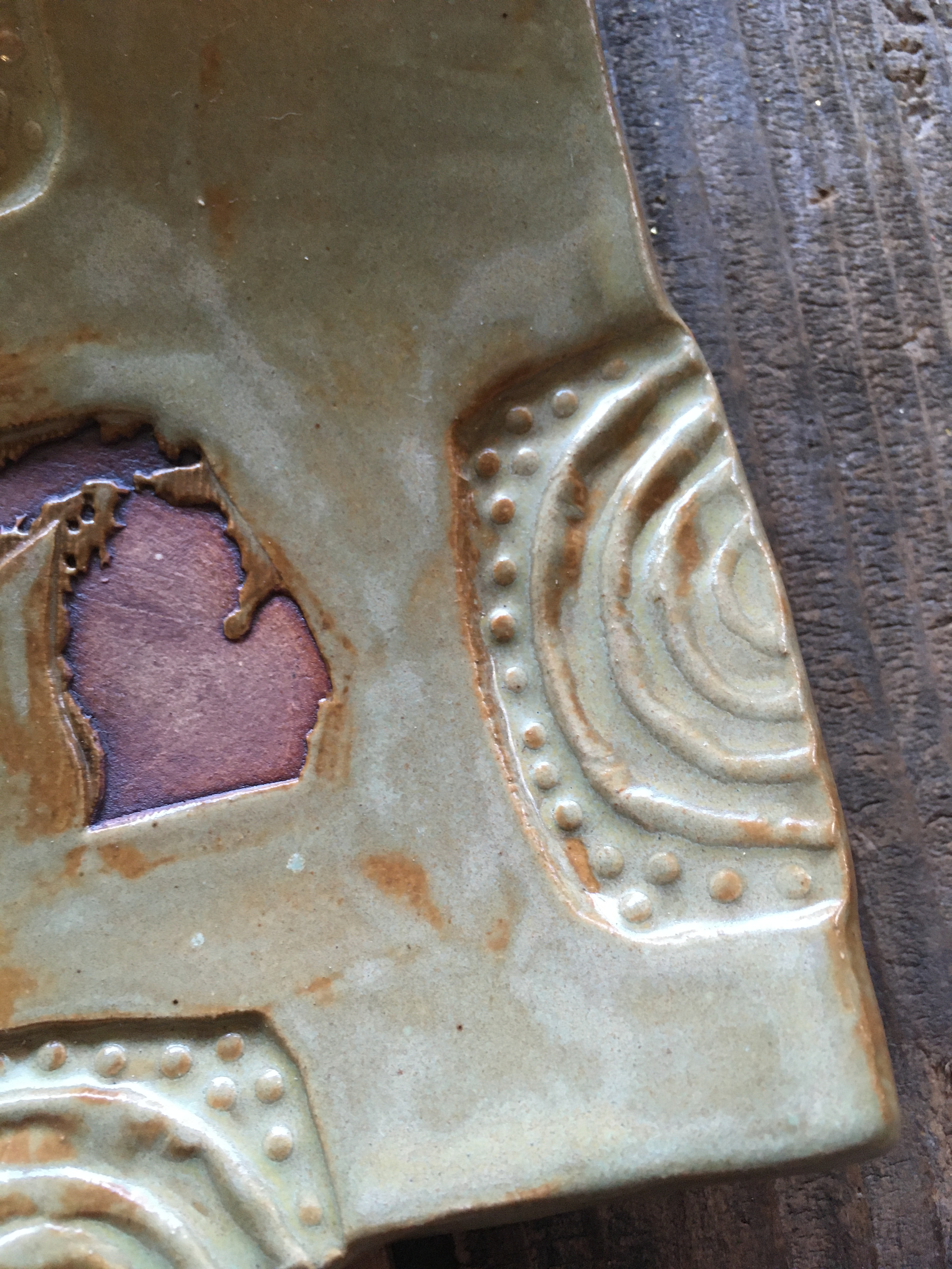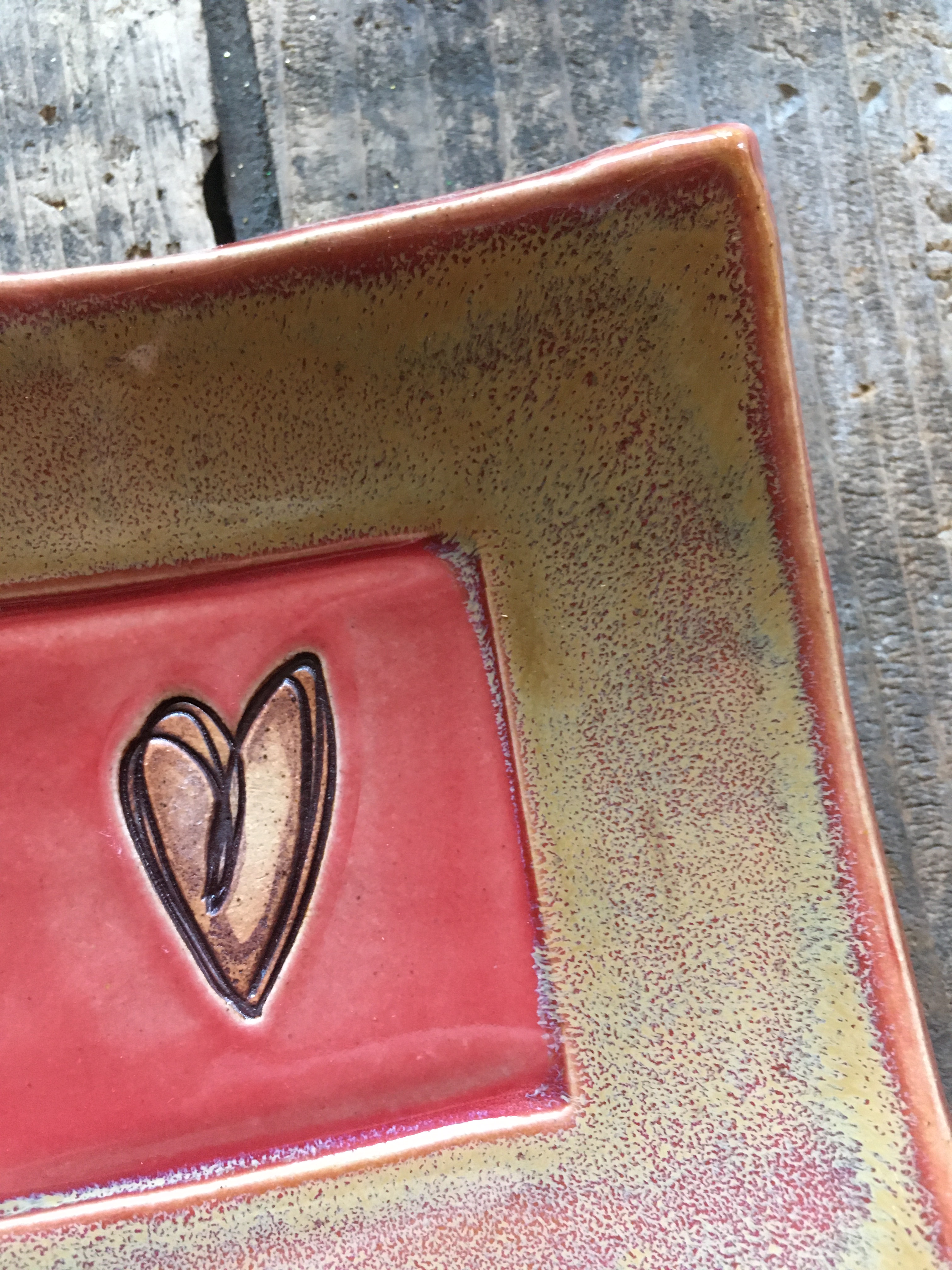 Unique and one-of-a-kind, each piece is created from raw clay that is rolled out, cut, stamped, carved and glazed by hand.